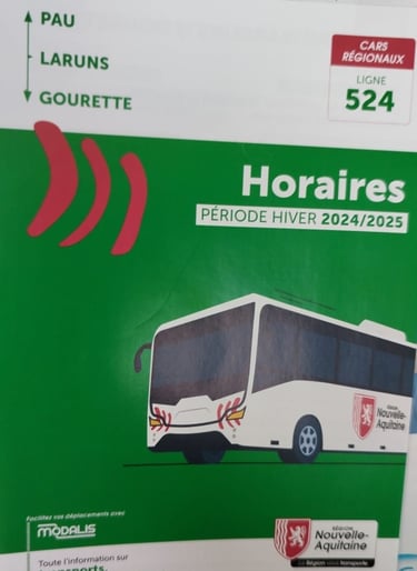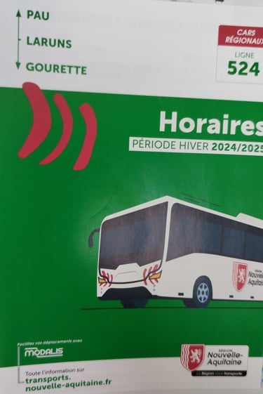 Ligne 524 depuis Pau. L'arrêt "Bourg de Bélesten" se trouve à 850 m du gîte.